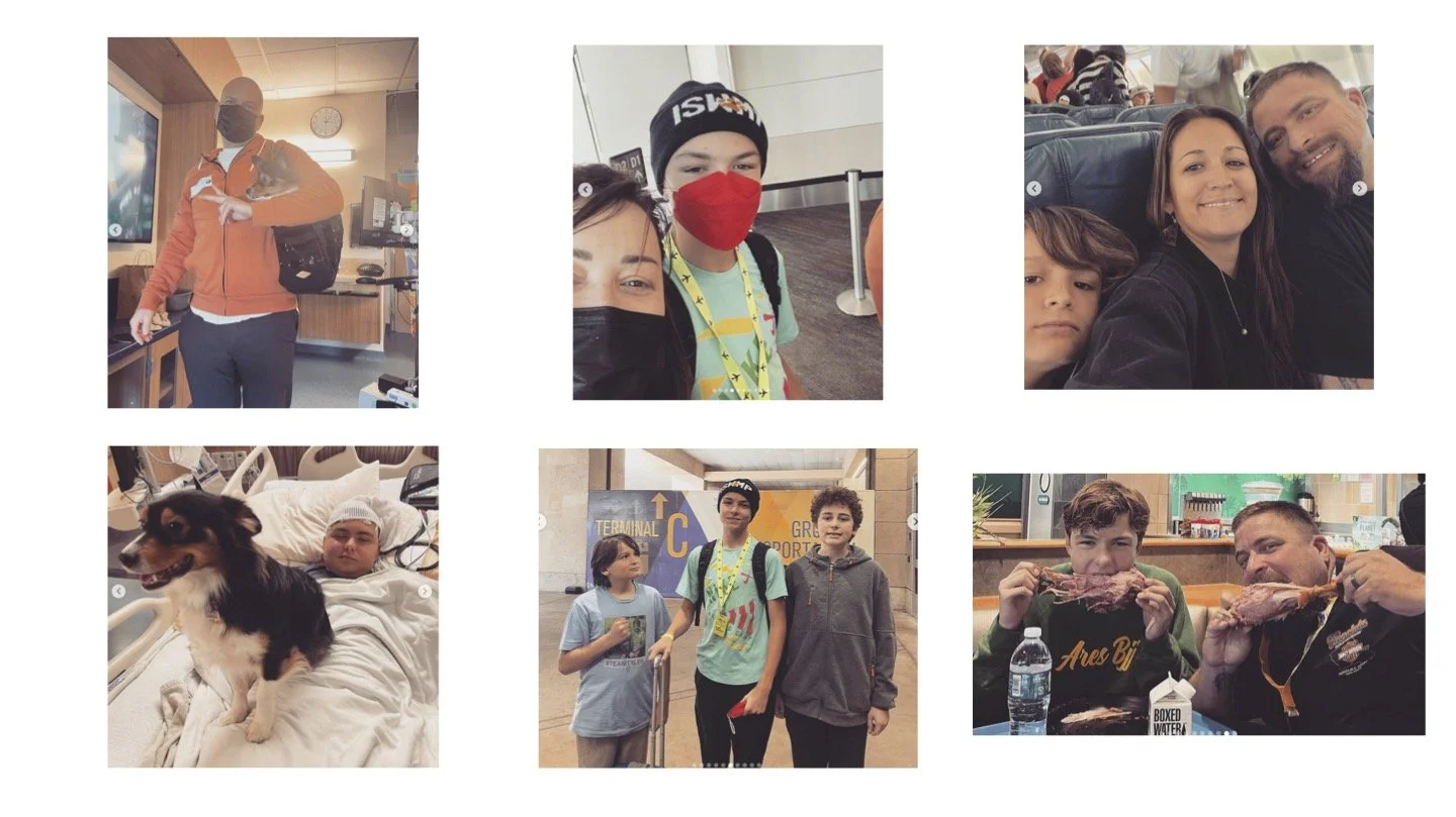 The images show Tyler in treatment, his Aunt and Uncle flying in, and Spencer having some fun with cousins Isaiah and Wyatt.